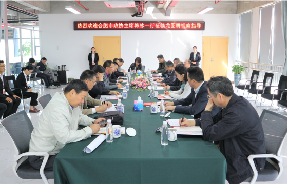 10月26日上午,合肥市政协主席韩冰一行莅临龙图腾视察调研,随行调研的领导还有合肥市政协副主席胡守祝,市政协常委、市政协社法委主任李琼等领导。龙图腾总经理刘光、副总王宝钢、业务总监王慧慧等相关负责人参与接待。