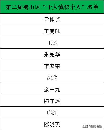 【第二届蜀山区"十大诚信个人"名单】