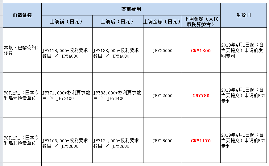 据悉,日本专利局自201941日起将实施新的官方收费标准,发明专利的实质审查费用上调17% 左右。