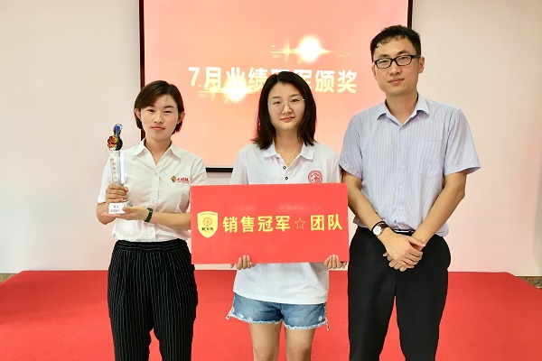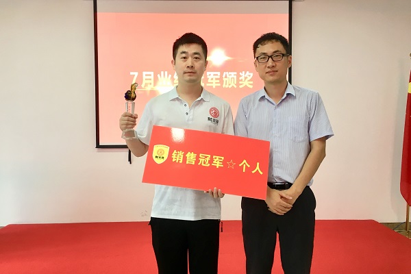 此次7月销售冠军团队由业务一部一组蝉联,业务一部三组李伟荣获销售冠军个人。朱总为7月销售冠军团队和销售冠军个人颁发了奖杯和奖牌。作为业务一部三组小组经理,李伟坦言今后将加强员工的基础业务知识同时分析业务模式,继而更好的拓展业务。并针对专利管理系统的开发和完善提出先讨论后优化的建议,希望客户在使用我们的系统时更方便、快捷。