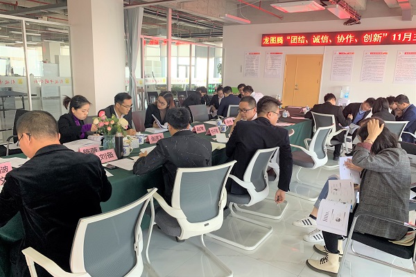 一个公司的发展需要众多人员的合作努力,这是必须遵循的规律;为了总结一段时间以来公司的工作业绩,安排下一步的工作计划,为龙图腾下一步的创新发展指明方向,给广大员工以无限的力量。在2019年11月9日,龙图腾总经理刘光及各部门领导在总部凌霄殿会议室隆重召开了11月主题营销例会。 会议于当日下午1点30分正式开始,本次会议由流程部总监周笑林主持,围绕主题“团结、诚信、协作、创新”展开激烈的讨论。