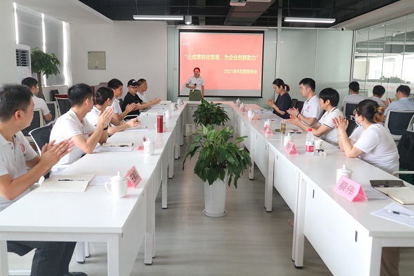 买专利卖专利找龙图腾,真高效! 查专利查商标用IPTOP,全免费!专利年费监控用IP管家,真方便! 2021年8月7日上午9点,在蜀山区4楼大会议室开始举行龙图腾公司8月营销例会,此次参会人员有龙图腾公司总经理刘光及各部门总监等,由项目部总监张俊俊主持此次会议。