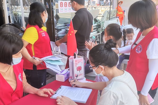 4个小时的时间里,各位同仁两三个人为一组,分工明确又勠力同心。活动期间,热心于献血公益事业的市民也不断前来咨询。尽管日头正盛,尽管口干舌燥,各位同仁们依然坚守职责,为公益事业贡献着自己微薄的力量。