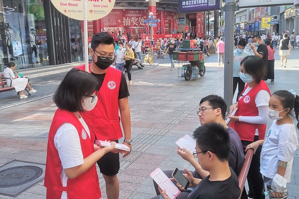 买专利卖专利找龙图腾,真高效! 查专利查商标用IPTOP,全免费!专利年费监控用IP管家,真方便! 11月6日,龙图腾深圳分部的各位同仁们来到深圳戏院旁的东门献血站参加由罗湖区文化志愿服务队组织的“疫情无情、为爱逆行献血及宣传招募”活动,旨在进一步宣传无偿献血,并为有意愿参与无偿献血的市民提供引导服务。 下午1点半,深圳分部业务部和技术部的各位小伙伴准时到达献血站。在献血站工作人员的安排下,大家换上了大红色的义工服。带上宣传牌、拿上宣传单、扛上应担的社会责任,我们出发啦!