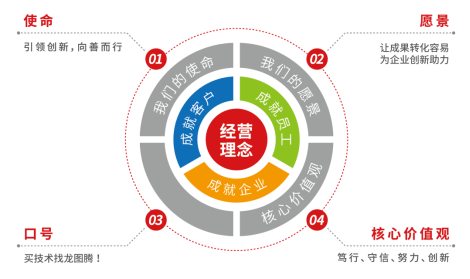 现在,我们龙图腾总部位于中国·合肥,在北京和深圳设有分部,由400名龙图腾家人为4000家龙图腾会员赋能,提供科技成果转化、知识产权运营、以及“互联网+”知识产权创新平台开发服务,业务遍及全球50多个国家和地区,服务全球10多万家合作伙伴。 未来,我们龙图腾仍将以 “引领创新,向善而行”为使命,秉承“笃行、守信、努力、创新”的核心价值观,努力实现“让成果转化容易,为企业创新助力”的愿景!我们龙图腾的使命始终如一,我们龙图腾的愿景终将实现,我们龙图腾的故事还在继续…… 在此,感谢过去和未来陪伴我们龙图腾成长的每一位龙图腾会员、每一位龙图腾员工、每一位龙图腾朋友。