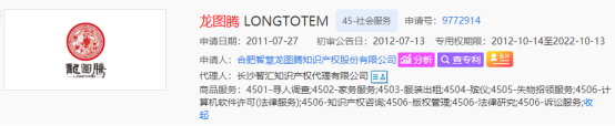 我冷静下来后,打开空调,然后打电话给公司设计师,让设计师为龙图腾加急设计LOGO,经过几天设计和修改,第一代龙图腾商标应运而生,然后我们立即提交了商标注册申请,经过商标局近一年的漫长审查,龙图腾这次给我们带来了幸运,我们的龙图腾商标在2012年7月13日初审合格了,又经过三个月的异议期后,终于在2012年10月14日成功核准注册。在龙图腾商标的审查期间,为了防止龙图腾商标驳回,我们还补充注册了狼图腾·凤图腾商标,很幸运,这件商标也顺利核准注册了。